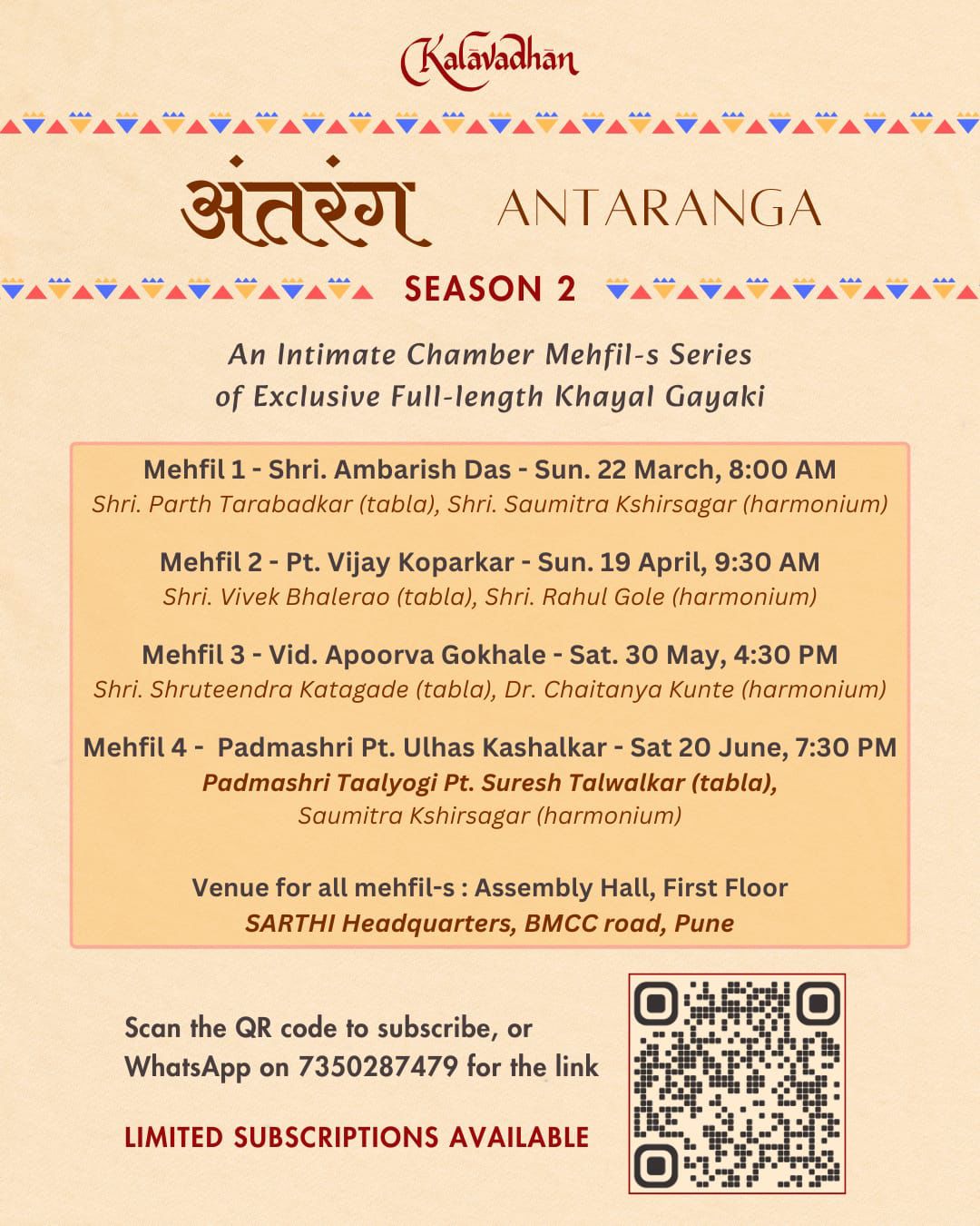| 3. | ANTARANGA - by Kalavadhan An intimate chamber mehfil series of full length Khayal Gayaki |